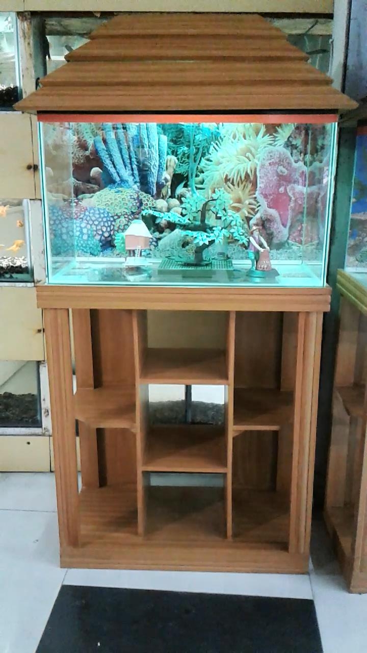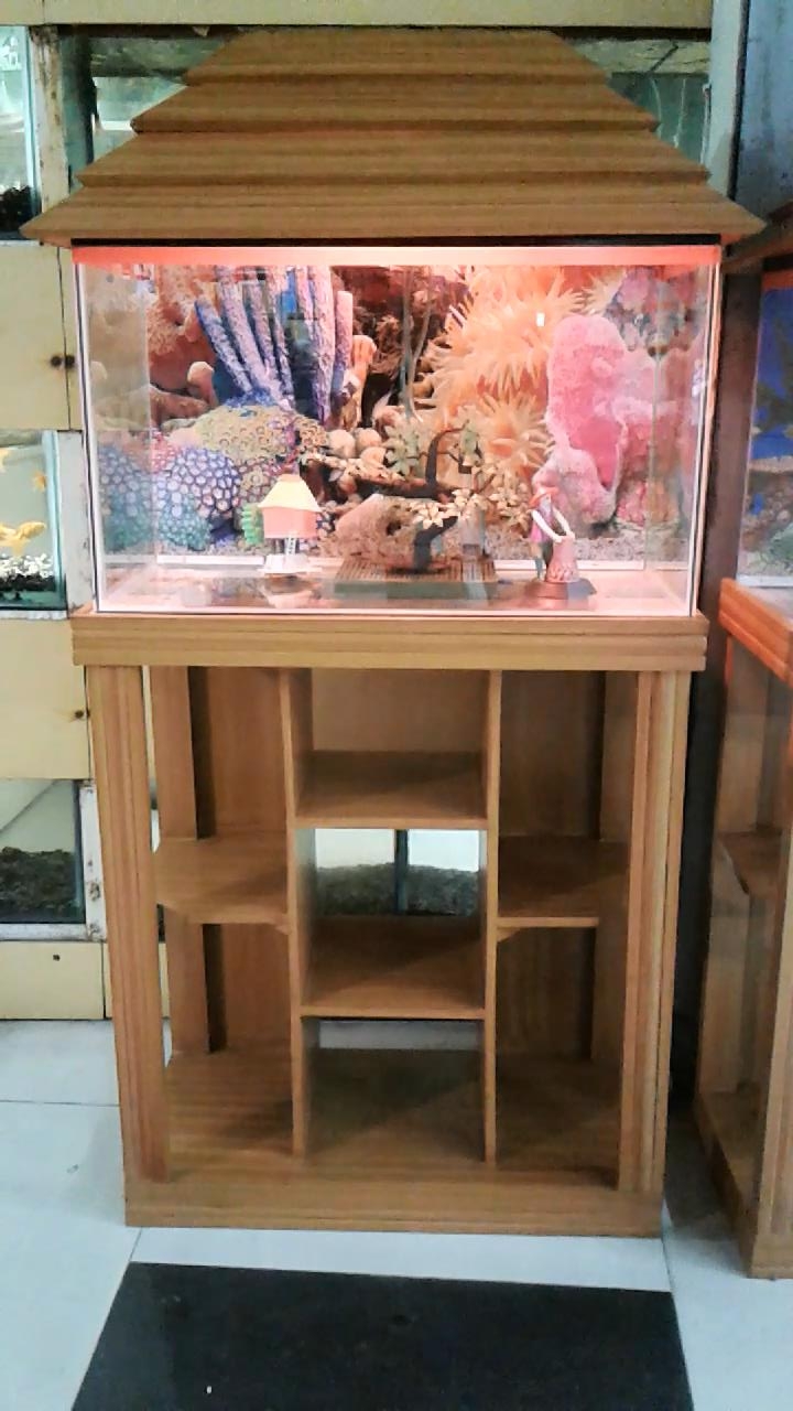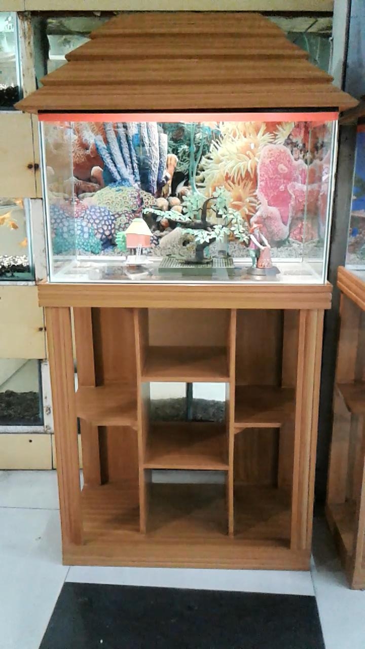 Aquarium সাজানো হয়েছে রঙিন লাইট দিয়ে। লাইটের রঙ পরিবর্তন হয় বেশ কয়েকটি মিষ্টি রঙ। এ্যাকুরিয়ামের স্ট্যান্ড। আরটিফিসিয়াল গাছ এবং পোস্টার দ্বারা সজ্জিত। এছাড়া থাকছে প্রয়োজনীয় পাথর। ফিল্টারতো থাকছেই। আর কয়েক ধরণের মাছ।