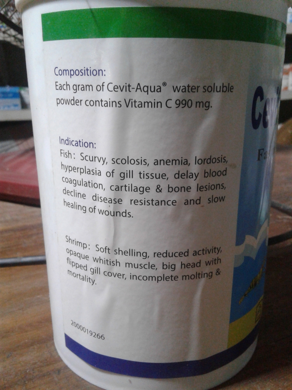 Each gram of Cevit-AquaⓇ water soluble powder contains Vitamin C 990 mg.