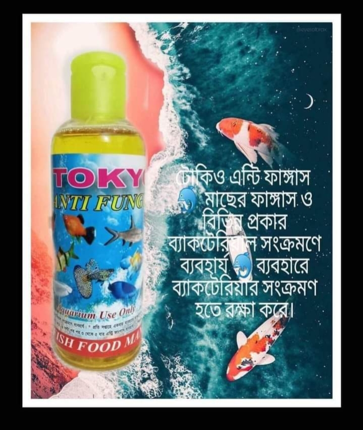 টোকিও এন্টি ফাঙ্গাস মাছের ফাঙ্গাস ও হোয়াইট স্পট সহ বিভিন্ন প্রকার ব্যাকটেরিয়াল সংক্রমণে ব্যবহার্য,ব্যবহারে ব্যাকটেরিয়ার সংক্রমণ হতে রক্ষা করে।
